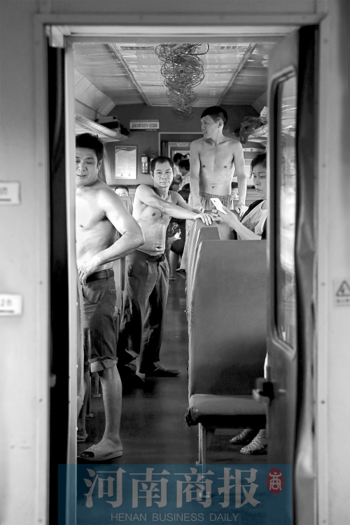 在綠皮車上,男性乘客多“光膀”