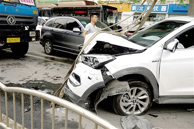 范先生的說法得到路口東北角一家醫(yī)院保安李師傅的證實(shí)。李師傅說,事發(fā)時(shí),他就面向西南坐在醫(yī)院門口,當(dāng)時(shí)南向北是綠燈,東向西是紅燈:“我先聽到了刺耳的剎車聲,抬頭看到白色現(xiàn)代帶著刺耳的剎車聲從南邊沖過來,然后拐向東北角,撞到了在路口等紅燈的淺灰色轎車?!?/p>