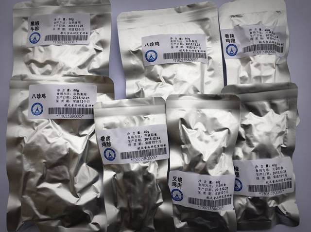 當(dāng)然,這些佳肴并非咱們常見的飯菜,記者了解到,這19種佳肴都是由河南永達(dá)集團(tuán)負(fù)責(zé)研發(fā),今年4月份,該公司承接為神十一研發(fā)生產(chǎn)航天員食品的任務(wù),按照航天員中心要求,技術(shù)中心迅速組織技術(shù)力量,結(jié)合航天員在軌停留時間延長,需要豐富產(chǎn)品種類,以及太空環(huán)境條件的消化吸收、營養(yǎng)轉(zhuǎn)化等因素,開展技術(shù)攻關(guān)和工藝創(chuàng)新,新研發(fā)的航天員食品順利通過專家組評審,全部進(jìn)入航天員食譜庫,12種產(chǎn)品成功入選“神十一”航天員食品。該公司技術(shù)中心主任徐清芬告訴記者,“以前我們提供的神八、神九、神十航天員食品主要是菜肴類產(chǎn)品,這次神十一我們有原有的菜肴系列7種產(chǎn)品,同時新增了主食系列、休閑系列12種產(chǎn)品,深受航天員喜歡!”