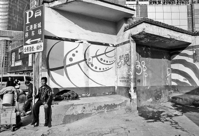 正月過半,解放路立交人力資源市場迎來了節(jié)后應(yīng)聘高峰,來自全省各地的農(nóng)民工,手拿招牌攬活。等活間隙,一些工人悄悄走到僻靜之處大行方便,絲毫不顧及人行道上來往的行人。位于解放路與銘功路交叉口東北角的一棟低矮建筑周圍,不時有行人和橋下攬活的工人來到墻根處方便。走近一看,這棟低矮建筑四面都是墻,無門無窗,既不是公廁也不是民房。一位行人稱,這里遠看就像一座廁所,很多路人經(jīng)過這里都以為是廁所,但卻找不到入口,索性就在墻根方便了。據(jù)附近環(huán)衛(wèi)工介紹,這里是一棟民房,因拆遷賠償未談妥,一直沒有拆遷,身后已高樓林立,這間民房依然沒有拆除。