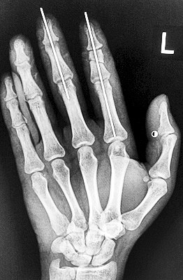 術后X光顯示,骨骼對位良好。