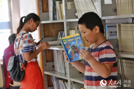 正值暑假,河南鄭州的24小時(shí)自助圖書館內(nèi),坐滿了前來看書和借書的市民,再掀閱讀熱潮。馬上就要讀初一的學(xué)生劉昇驊是個(gè)勤奮的孩子,每天早上7點(diǎn),他騎車從鄭州的東區(qū)趕到這里的自助圖書館,復(fù)習(xí)新的課程,晚上8點(diǎn)左右才離開。