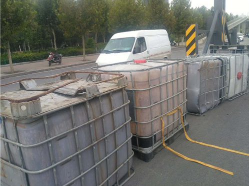 據(jù)貨車(chē)司機(jī)介紹,他車(chē)上拉的這些邊長(zhǎng)約1米的方形大桶是裝醬油用的,當(dāng)天拉著這些空桶從新鄭來(lái)到鄭州,因?qū)β窙r不熟,不知道此處上橋口有3米的限高桿,直到上橋時(shí)撞上限高桿后,才知道貨車(chē)不讓上三環(huán)立交橋。