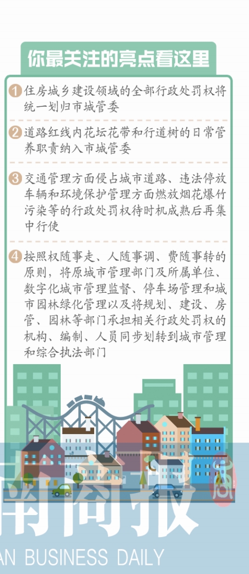 業(yè)內(nèi)人士分析,住房城鄉(xiāng)建設(shè)領(lǐng)域的全部行政處罰權(quán)之前分別在建委、房管、園林、城管等部門,而這次將統(tǒng)一劃歸市城管委。