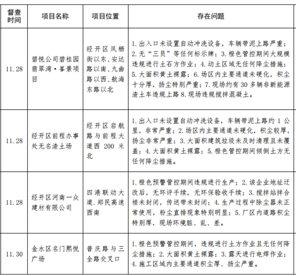 12月7日,記者從鄭州市環(huán)境污染防治攻堅(jiān)辦了解到,11 月 27 日至 12 月 3 日,鄭州市環(huán)境污染防治督導(dǎo)組重點(diǎn)對全市"封土行動"方案、橙色預(yù)警管控措施落實(shí)和 30天沖刺行動方案落實(shí)情況進(jìn)行督導(dǎo)檢查。