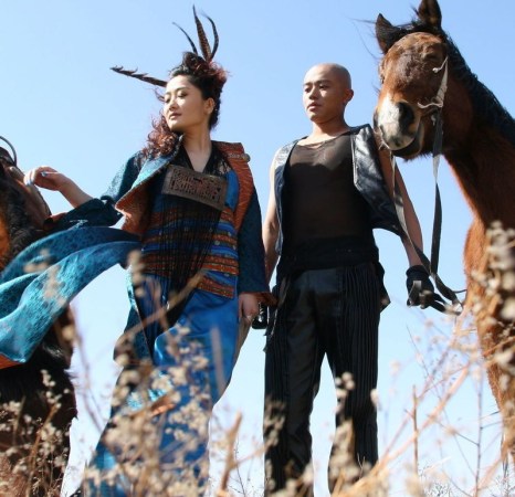 楊魏玲白色藏服走民族風,曾毅皮草外套搭配牛仔褲,大有周董的幾分功力。這時兩人依舊主打“異次元”的風格,“一人一世界”。