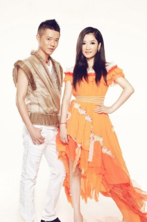曾毅金色背心搭配白色褲子,楊魏玲花一襲橙色花邊裙,顏色的統(tǒng)一讓兩人打破原來特有的“不和諧”感,造型越發(fā)時尚。