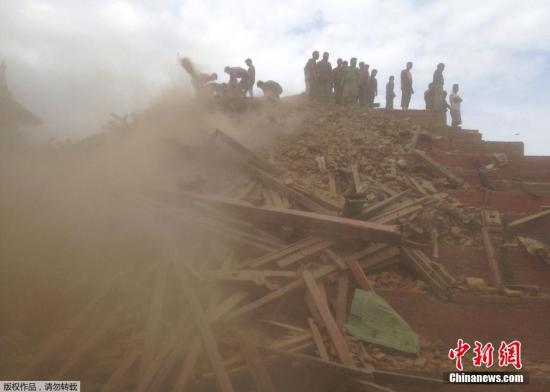 據(jù)中國地震臺(tái)網(wǎng)正式測定:04月25日14時(shí)11分在尼泊爾(北緯28.2度,東經(jīng)84.7度)發(fā)生8.1級(jí)地震,震源深度20千米。圖為加德滿都地震救援工作展開。
