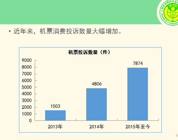 截至上周,2015年網(wǎng)絡(luò)訂購(gòu)機(jī)票投訴已達(dá)到7874件。