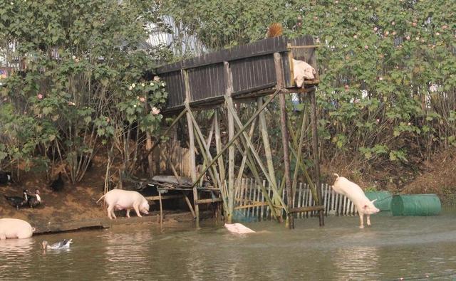 湖南一農(nóng)民每天逼"跳水"提高豬肉品質(zhì)