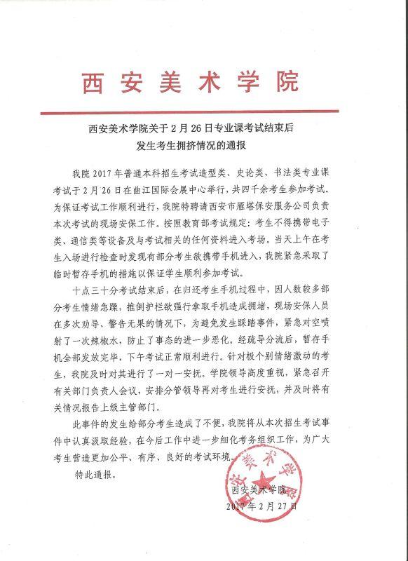 西安美術學院發(fā)布的情況通報。