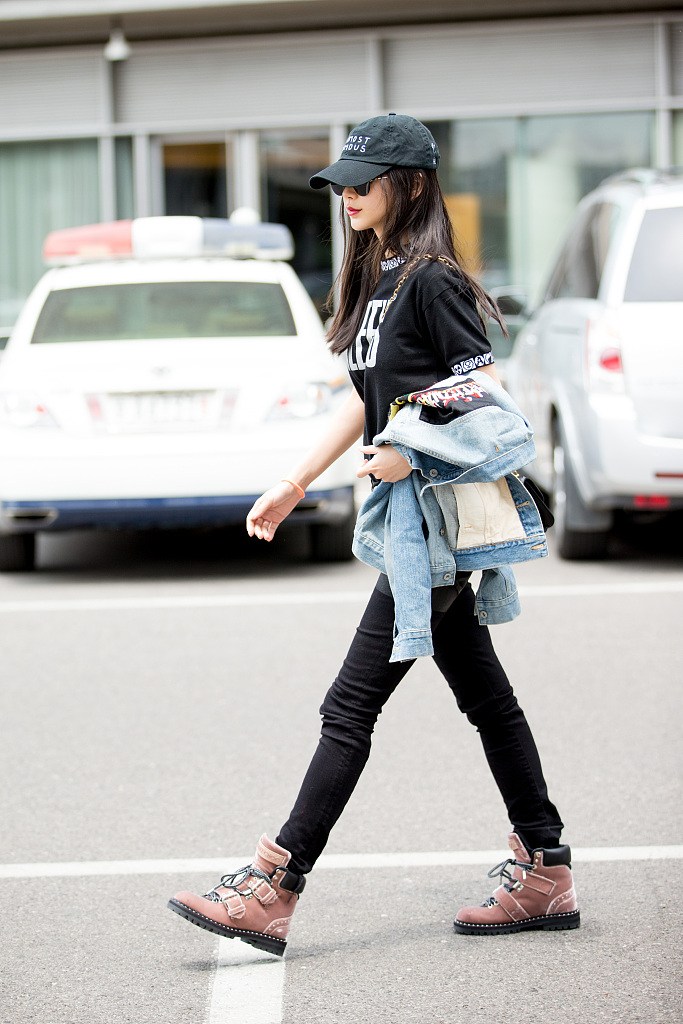 Baby全黑出街"微笑唇"點睛 雙腿細(xì)長直