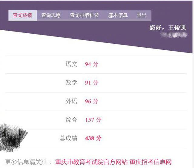 據悉,王俊凱438分的總成績在重慶市的高考分數線中,超過二本線2分,對于一個藝考成績來說,實屬不易。