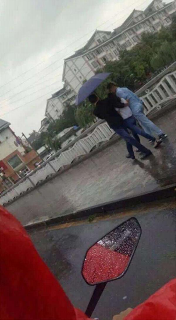 當(dāng)日下午6時許,小唐正騎著電動車前往商家取餐,途經(jīng)都江堰市一環(huán)路柏條河橋路段時,橋上人行道的兩名可疑男子引起了他的注意。“當(dāng)時,有兩個男的撐著傘,兩人之間還架著一個年輕的女娃娃?!拔耶?dāng)時已經(jīng)過他們了,但聽到一個男子說‘你不聽話就弄死你’,我一下就覺得不對勁了?!毙√平榻B,隨后他放慢了車速,來到了三人的身后側(cè)方位置,慢慢地跟隨在后方,同時掏出手機(jī),拍下了三人的照片?!爱?dāng)時想這個女娃娃肯定是遭到了綁架,拍照可以作為證據(jù)?!?/p>