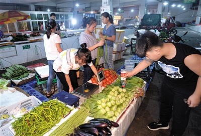 凌晨3點(diǎn)半,孩子們到北山市場(chǎng)批發(fā)蔬菜,大家忙著討價(jià)還價(jià)。