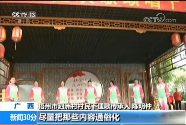 廣西梧州市泗洲村村民下俚歌傳承人 陳明仲:把十九大精神變成下俚詞來演唱,就盡量把這些內(nèi)容通俗化,讓村民容易理解。