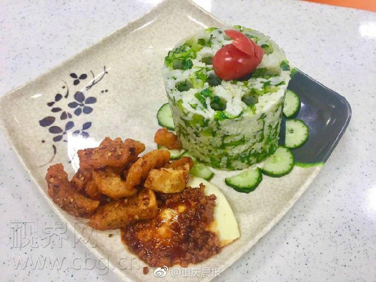 重慶一高校食堂再出神作,這次食堂師傅們用模具把米飯制作成了蜂窩煤的模樣,加上米飯采用的是紫米,蒸熟后的模樣簡(jiǎn)直與真的蜂窩煤一模一樣!搭配一葷一素的配菜,這樣一套營(yíng)養(yǎng)豐富、外觀搶眼的“蜂窩煤”套餐售價(jià)11元,自上周在學(xué)校推出以來很快就受到了同學(xué)們的追捧。