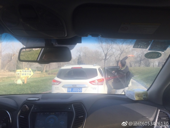 據拍照片的游客稱,其在北京大興野生動物園自駕游時,看到照片中的男子在黑熊區(qū)、棕熊區(qū)兩次下車拿東西扔向熊。