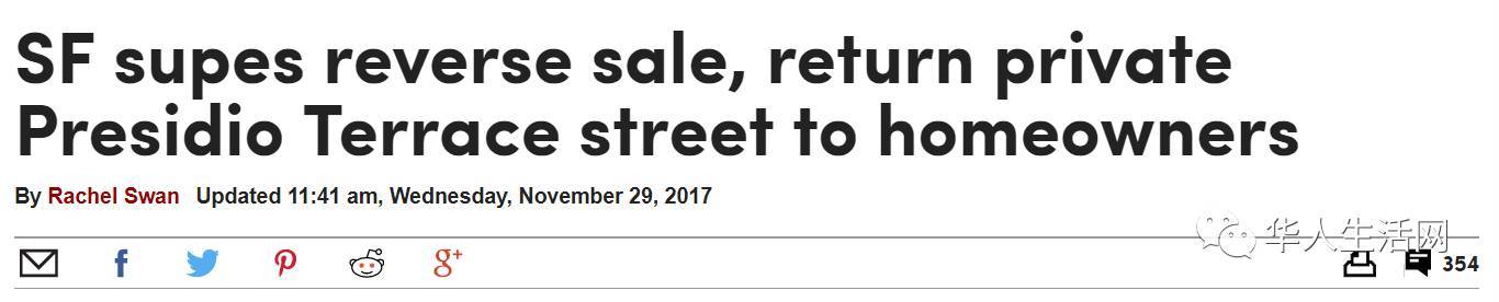 一對住在硅谷的年輕華裔夫婦以9萬元購得舊金山高尚住宅區(qū)太平洋崗的一條小街道Presidio Terrace,35棟超級豪宅業(yè)主試圖拿回街道所有權。舊金山市參事會昨日就事件舉行聽證會,市參事會最后以7對4通過,取消Presidio Terrace街道的買賣。