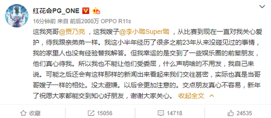 與李小璐交往甚密?PG ONE發(fā)微博澄清