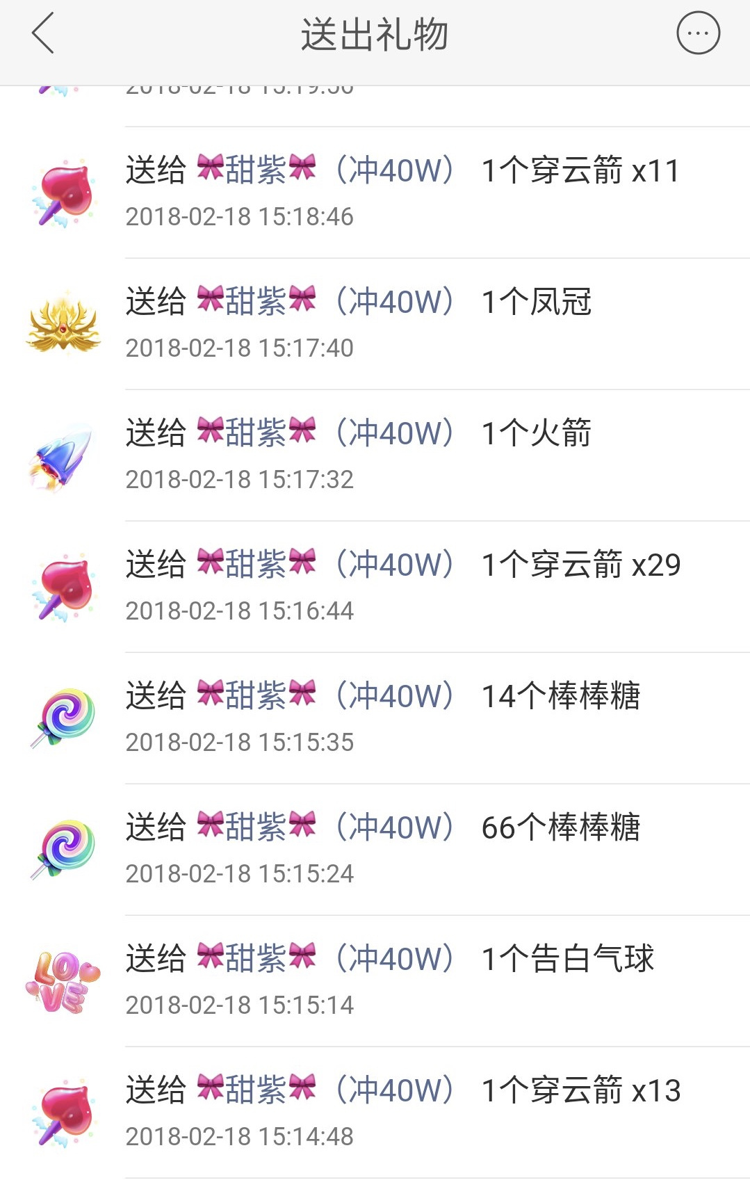 小薇出手闊綽,還經(jīng)常將同樣的禮物一次連刷好幾個(gè),打賞記錄顯示,最多時(shí)她一次連刷29個(gè)“穿云箭”送給“甜紫”,折合人民幣8375.2元。