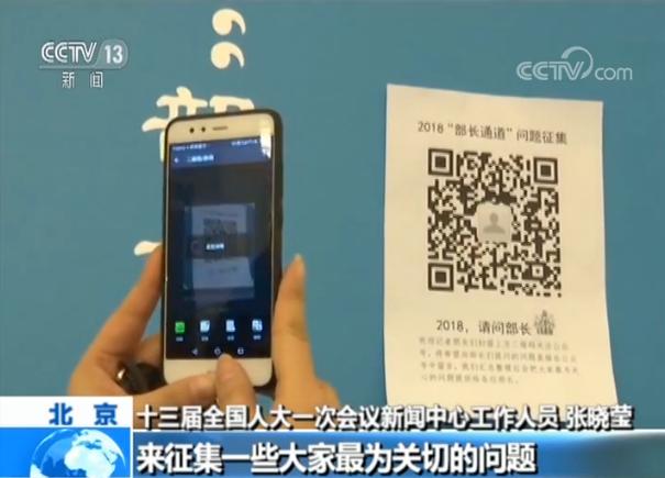 ???十三屆全國(guó)人大一次會(huì)議新聞中心工作人員張曉瑩:我們自己做了一個(gè)公眾號(hào),通過(guò)這個(gè)公眾號(hào)征集一些大家最為關(guān)切的問(wèn)題。然后我們也把這些問(wèn)題反饋給各部委,選擇一些大家最為關(guān)切的問(wèn)題,將來(lái)在部長(zhǎng)通道的時(shí)候進(jìn)行一個(gè)問(wèn)答。