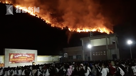 整座山都在燃燒 山下學(xué)校仍淡定開(kāi)動(dòng)員會(huì)