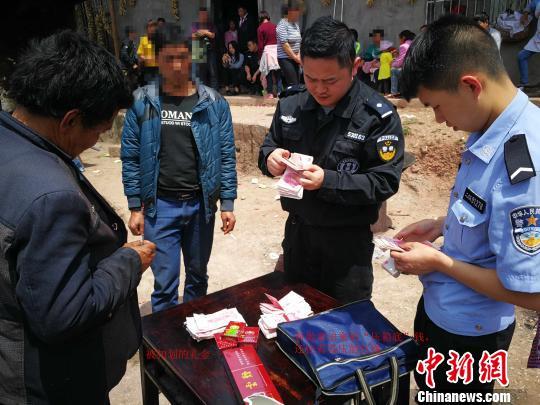 圖為執(zhí)行干警在清點(diǎn)裝份子錢的包與“壓箱底”錢。 賈朝勇 攝
