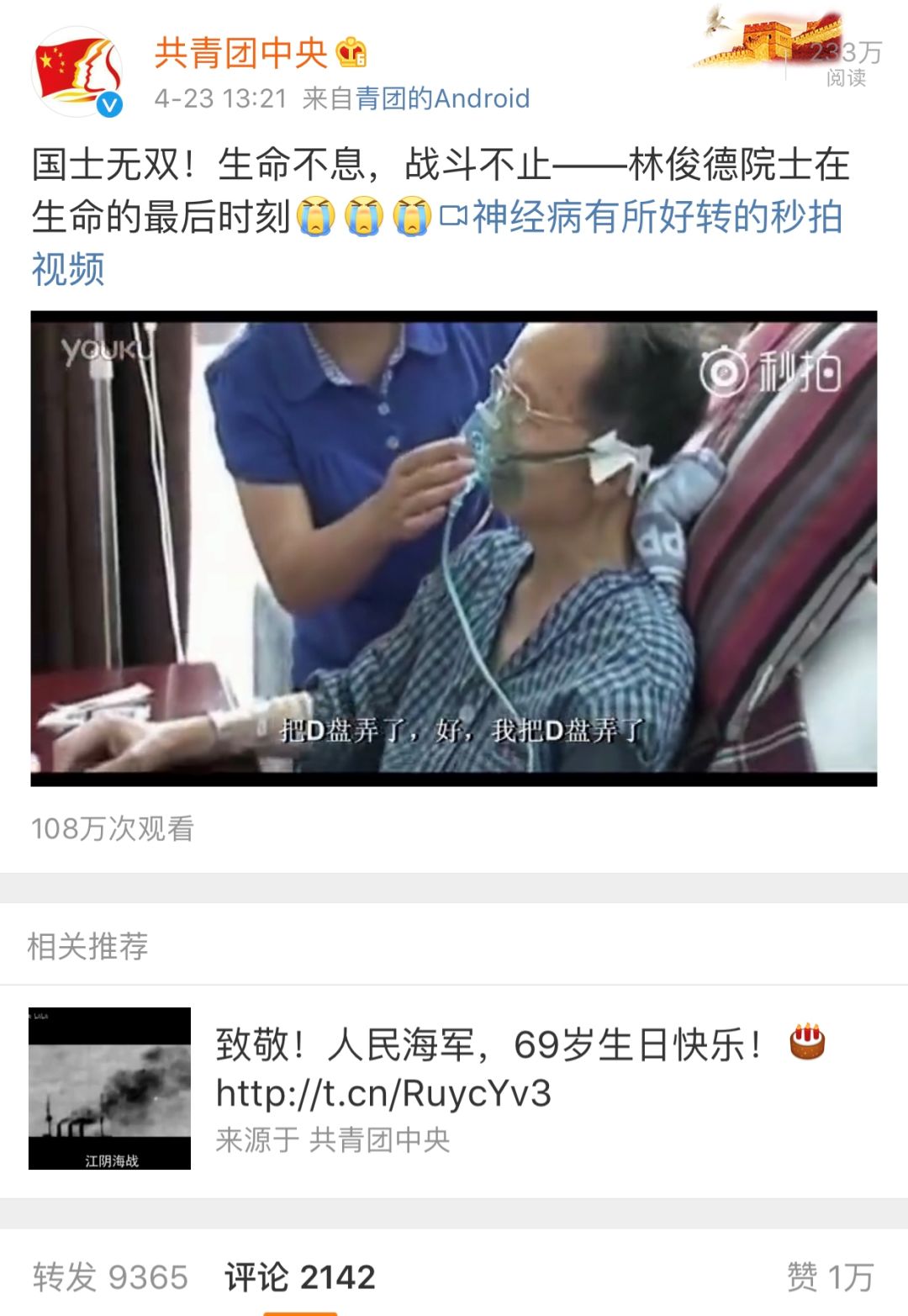 23日,@共青團中央 微博發(fā)的這個視頻,近萬網(wǎng)友轉發(fā),評論令人動容…