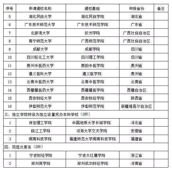 教育部擬批準(zhǔn)設(shè)置的高校名單如下: