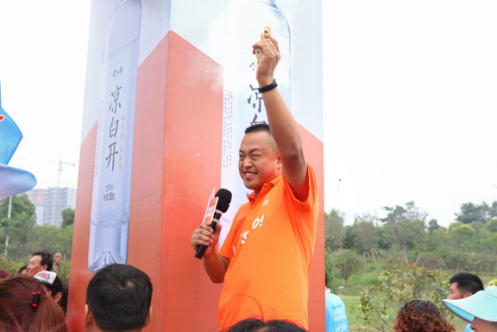 看,今麥郎飲品有限公司漯河大區(qū)營(yíng)銷(xiāo)部長(zhǎng)李平激昂講話,帥氣揮槍?zhuān)钕麻_(kāi)走