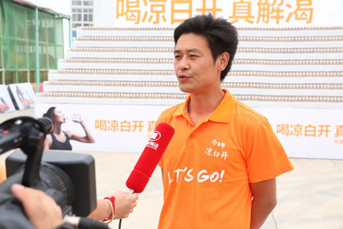今麥郎飲品有限公司漯河大區(qū)營(yíng)銷(xiāo)部長(zhǎng)李平接受記者采訪