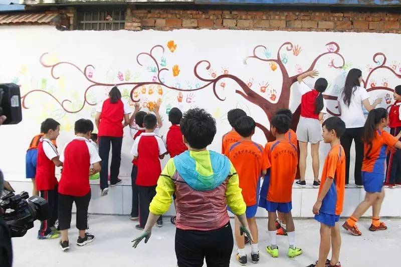 最后鄧亞萍和第一書記秦倩與老師同學(xué)們一起拿起畫筆,在希望小學(xué)的墻上畫出孫莊村的未來……