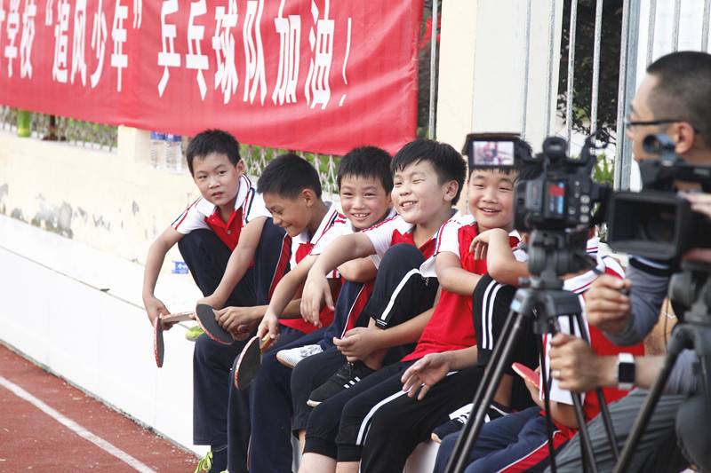 鄧亞萍與小隊長切磋球技 關(guān)注體育教育基礎(chǔ)發(fā)展