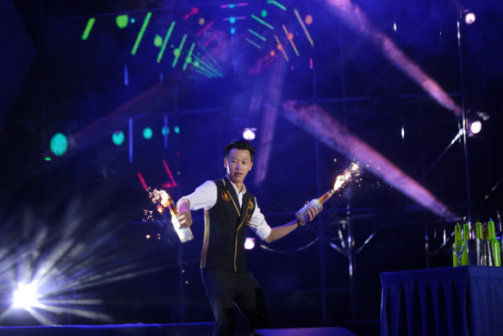 所謂壓軸狂歡,是臺下觀眾的飽滿熱情—花式調(diào)酒更美味,臺上臺下齊歡樂,調(diào)酒師現(xiàn)場表演花式調(diào)酒,臺下觀眾有眼福更有口福。