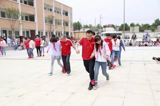 “加油,加油!”昨天,中牟黃店鎮(zhèn)中心小學的學生和志愿者們一起在廣播的音樂下玩著背靠背、兩人三足的游戲,大家玩得興高采烈。而這樣普通的游戲,這個學校的很多孩子是第一次玩兒。