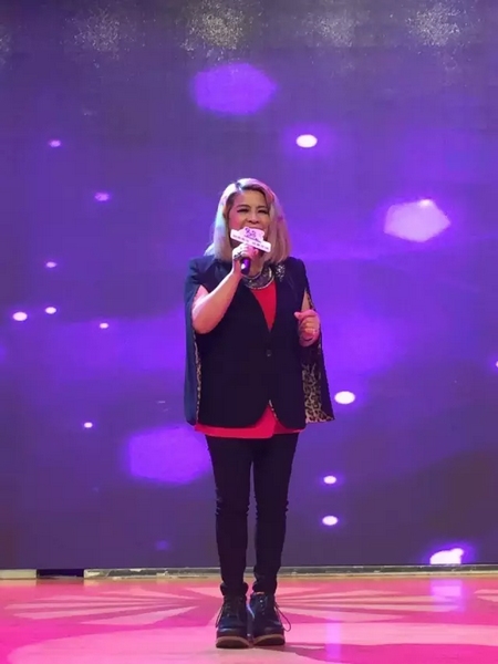 唱享會還未開始傅薇已經在現(xiàn)場彩排了