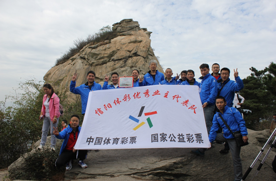 在五公里蜿蜒曲折的登山步道上,信陽(yáng)體彩代表隊(duì)各成員互幫互助,你拉我一把,我扶你一步,“責(zé)任 誠(chéng)信 團(tuán)結(jié) 創(chuàng)新”的體彩精神在這一刻得到了最好的體現(xiàn)。在山頂報(bào)曉峰廣場(chǎng),大家不知疲倦為群眾介紹體彩玩法,成為了一個(gè)個(gè)流動(dòng)的宣傳站。