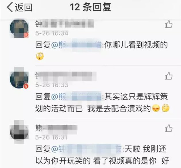 王雪在微博回復(fù)中稱“我是去配合演戲的”