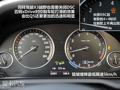 嘗試了幾次之后,其結果都是因為這種看似顯得有些尷尬的郁悶一直在左右著我們,并最終以失敗告終。經(jīng)過不懈的努力,寶馬X3還是艱難的成功登頂,雖然過程依舊是上述的尷尬窘境在重復上演,但是在車輛還未完全失速的關鍵時刻果斷選擇一條沒有車轍的平坦線路,并保持一個穩(wěn)定的發(fā)動機轉速是最終令X3成功登頂?shù)拿荑€所在。