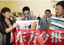 “為啥還配發(fā)有眼鏡?”不少人對東方今報發(fā)行員工手中的眼鏡比較感興趣。當得知報紙是3D的,戴上眼鏡,“樓”就站在報紙上時,不少客商紛紛戴上眼鏡體驗一把。