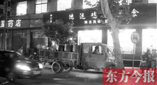 每天晚上10點(diǎn)左右,一對(duì)來(lái)自中牟的夫妻就開(kāi)著一輛機(jī)動(dòng)三輪車(chē)來(lái)店里拉泔水,同時(shí)還會(huì)將店里的其他垃圾也清走。