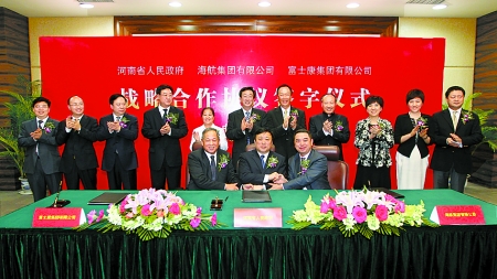 河南日報??谟?(記者楊 凌)河南開放合作再譜新篇章。3月31日下午,河南省人民政府、海航集團有限公司、富士康集團有限公司戰(zhàn)略合作協(xié)議簽字儀式在海口舉行。
