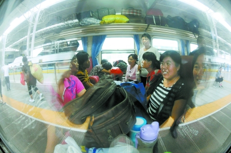 據(jù)鄭州鐵路局介紹,8月20日到9月11日,鄭州鐵路局加開了23趟棉農(nóng)專列運送摘棉工進疆。為方便棉農(nóng)就近上車,節(jié)約棉農(nóng)旅途成本,這些列車將分別從棉農(nóng)較集中的商丘、許昌、寧陵、蘭考等車站始發(fā)。 (趙鵬 攝)