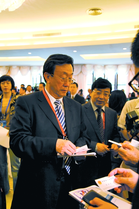 論壇開(kāi)始前,郭庚茂一走進(jìn)會(huì)場(chǎng),就被眼尖的代表們認(rèn)出,不斷有人主動(dòng)去交換名片。論壇剛一結(jié)束,臺(tái)上嘉賓和臺(tái)下聽(tīng)眾“呼啦”一下都擁到郭庚茂身邊,有的要名片,有的要合影,有的要預(yù)約采訪。郭庚茂微笑著一一滿足大家的要求。