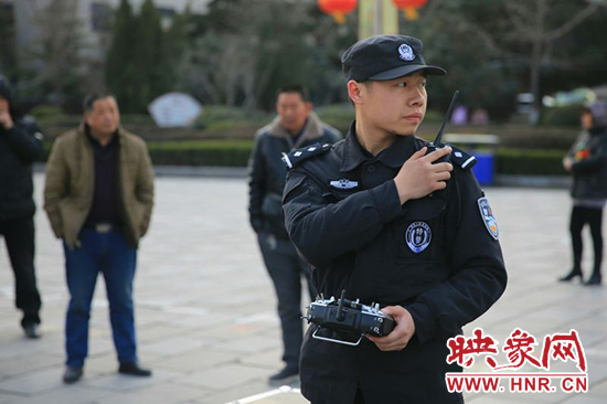 映象網(wǎng)訊(記者 王文凱 通訊員 牛智瑞 薛勇)1月20日下午,隨著首架警用無人機在滎陽市人民廣場升空試用,滎陽市治安管理正式步入“無人機時代”。這臺主要用于反恐處突、森林防火、應(yīng)急防空、交通巡查、應(yīng)急指揮、通信保障的警用無人機,將在春節(jié)期間進行空中巡邏,專盯違規(guī)在市區(qū)燃放煙花爆竹者。