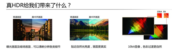 MU9600攜帶了許多高端技術(shù),包括3D顯示、曲面屏幕等,但要說最值得夸耀的無疑是現(xiàn)在最熱門的HDR技術(shù)。2015末至今HDR已經(jīng)成為許多智能電視的標(biāo)配技術(shù),從效果上來說HDR能讓畫面的整體均勻性更好,因此HDR技術(shù)也被譽為是繼4K后最重要的畫質(zhì)技術(shù)。