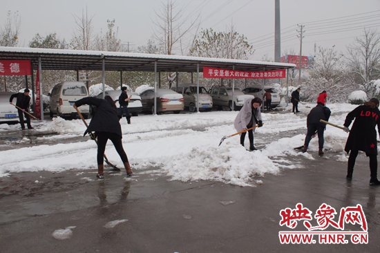 滎陽:百余公交人 街頭除冰雪
