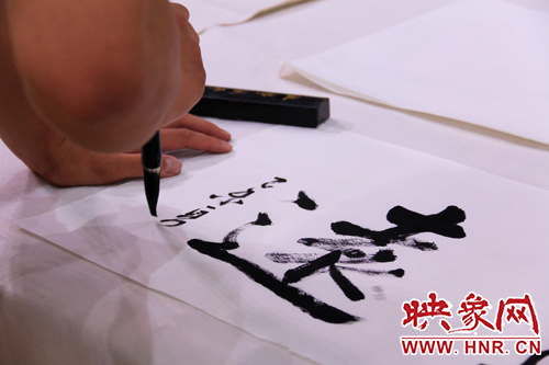 王丙申老師現(xiàn)場(chǎng)展示書(shū)法(丁靚琦/攝)