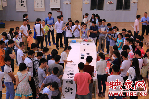 據(jù)了解,今年恰逢鄭州大學(xué)書(shū)法協(xié)會(huì)成立二十周年。其負(fù)責(zé)人介紹道:“我們希望通過(guò)這個(gè)活動(dòng)給省內(nèi)各高校的書(shū)法協(xié)會(huì)提供一個(gè)讓大家互相學(xué)習(xí)的平臺(tái),展示書(shū)法藝術(shù)的魅力,傳承書(shū)法文化,讓各高校書(shū)法愛(ài)好者們?cè)诮涣髦泄餐M(jìn)步?!?/p>